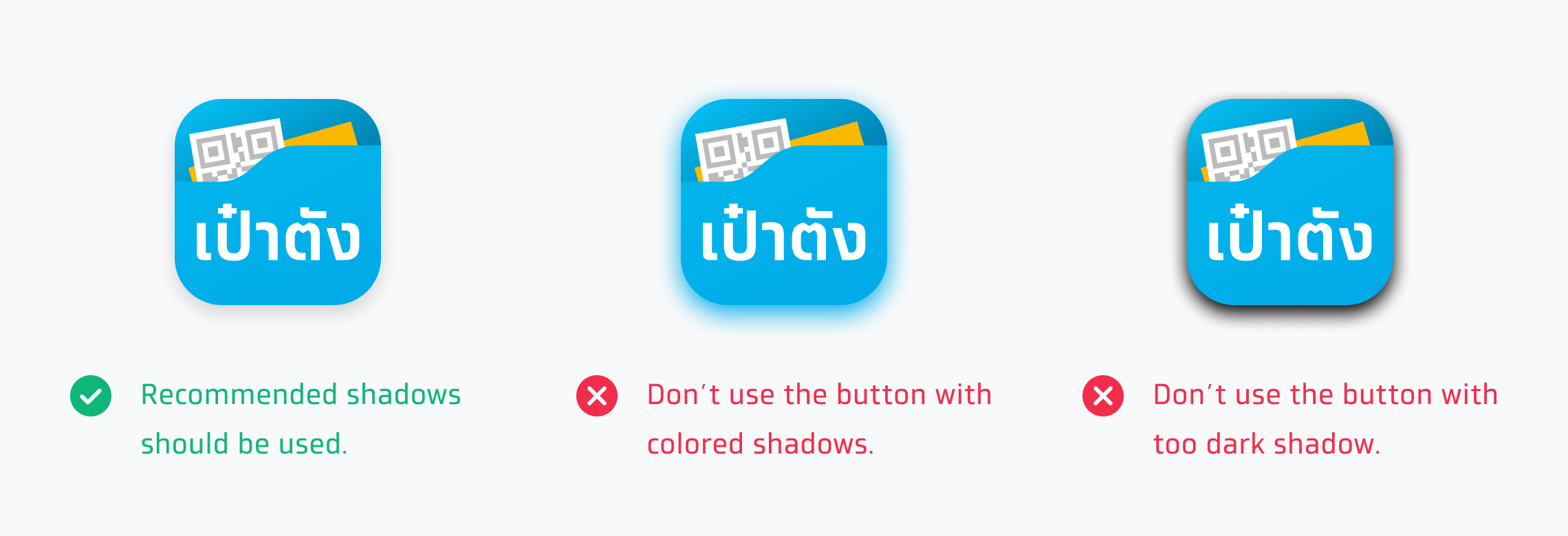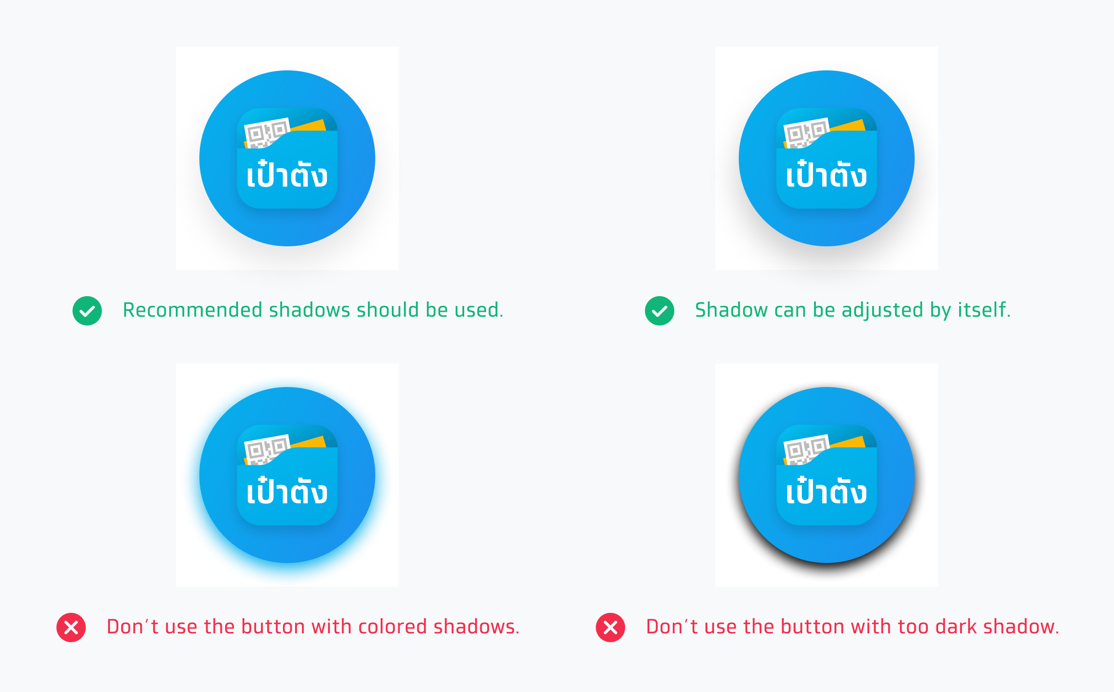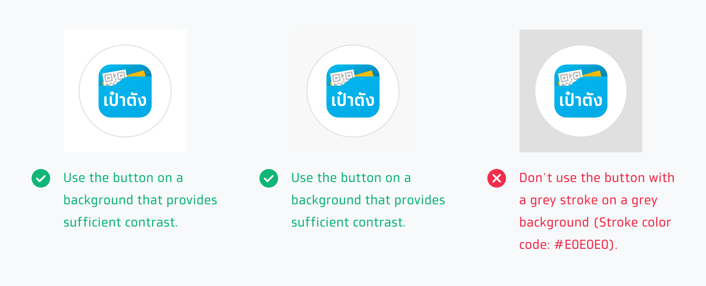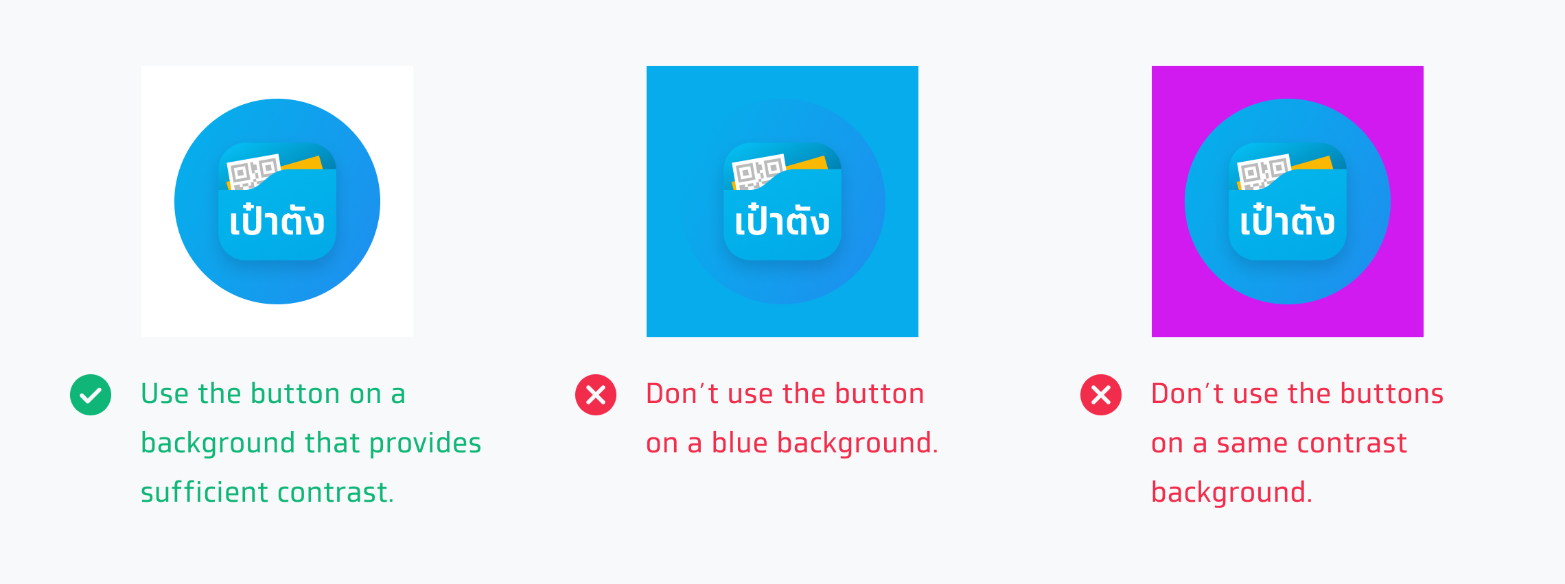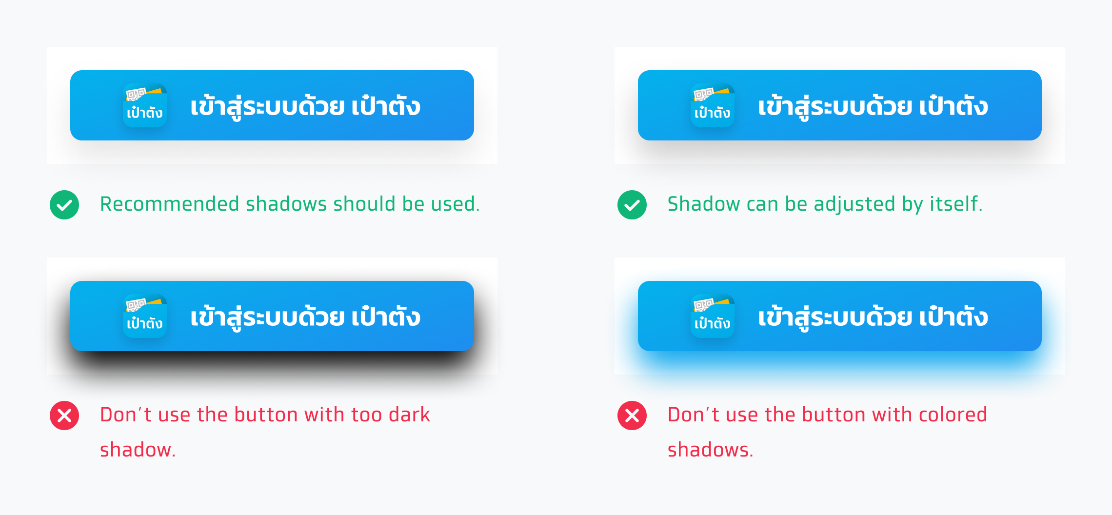 These are button sizes that are usually used in the application. The size and padding number are not fixed and can be adjusted to match with the appearance of other buttons. A logo-only ‘เข้าสู่ระบบด้วย เป๋าตัง’ button always has a 1:1 aspect ratio.