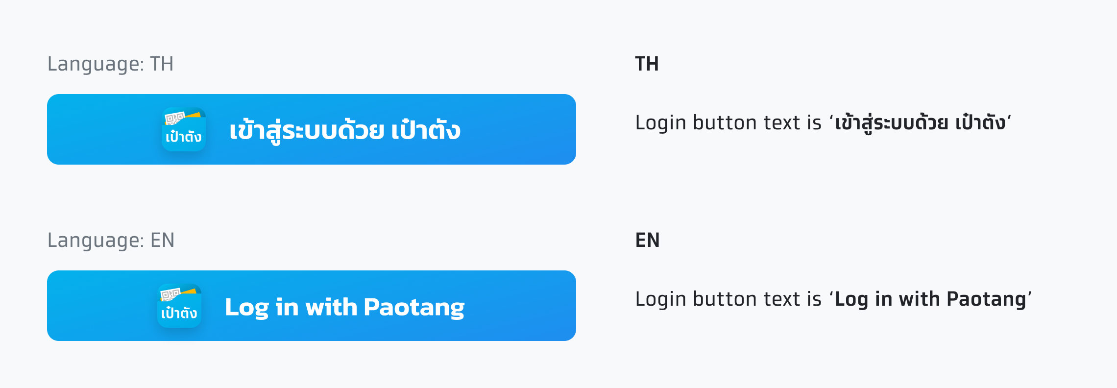 The recommended text for Paotang login button is 'เข้าสู่ระบบด้วย เป๋าตัง'